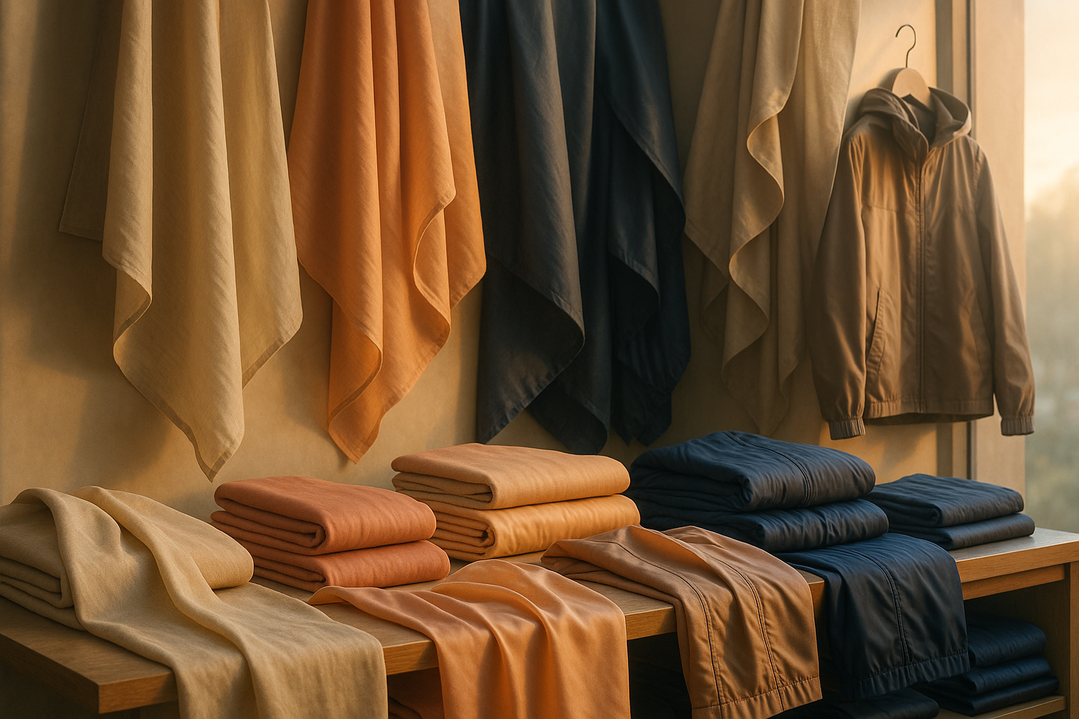 Linen, Cotton, Cotton Blends, Microfiber, Taffeta, Twill, Taslon, Nylon Oxford, Outerwear & Swim-short fabrics, and technical jacket materials developed for precision and performance.